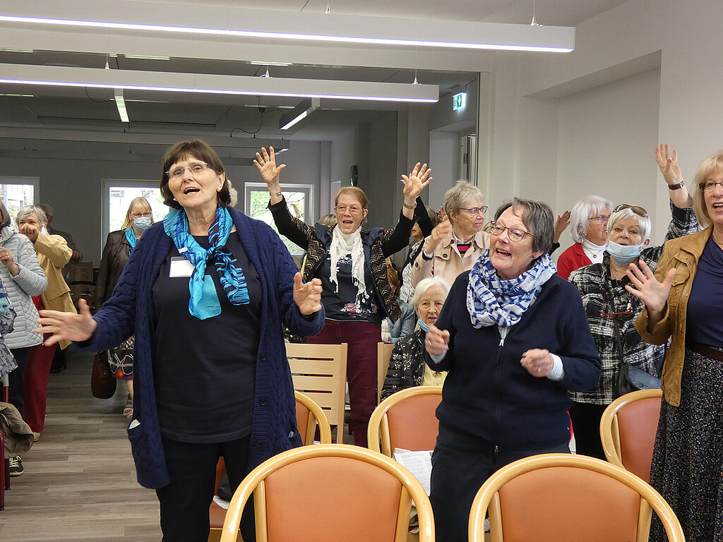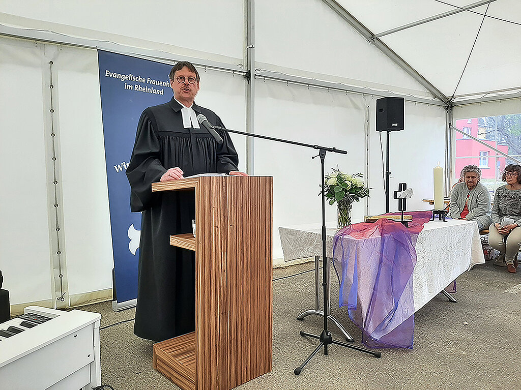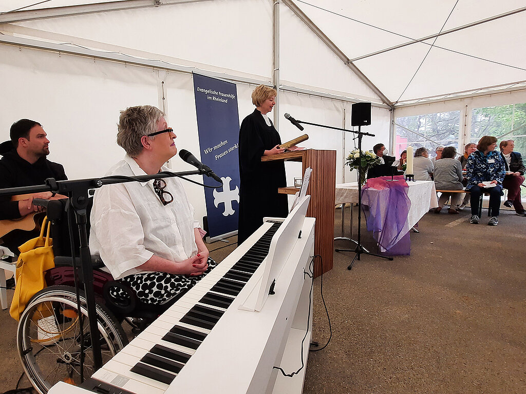 Am 29. April wurde das Haus der Frauenhilfe nun offiziell mit einem Festgottesdienst eingeweiht, in dem Christoph Pistorius, Vizepräses der Evangelischen Kirche im Rheinland, die Predigt hielt. 150 Frauen vom Niederrhein bis zum Saarland reisten an, um diesen besonderen Tag zu feiern. Und immer wieder hörte man: „Es tut so gut, sich endlich wieder treffen zu können. Endlich feiern wir wieder zusammen Gottesdienst, können singen und miteinander reden. Uns hat die Gemeinschaft sehr gefehlt!“ Die Kölner Musikerin Bea Nyga und ihr Gitarrist sorgten für eine großartige Stimmung mit Musik aus 66 Jahren….