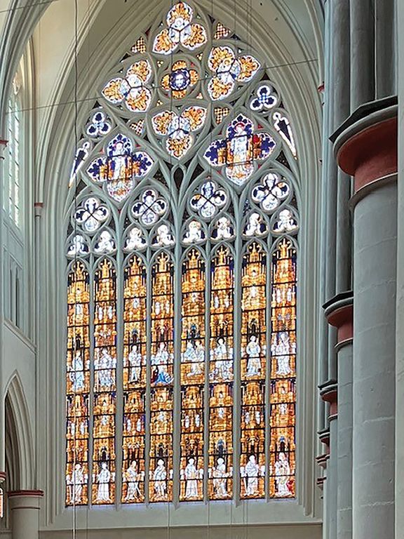 Am Ende lassen wir alles los: Menschen, Besitz, Ansehen, das ganze Leben. Mit leeren Händen stehen wir vor dem Haus Gottes, dem himmlischen Jerusalem. Im Mittelalter hat man sich das ewige Zuhause wie das Westfenster im Altenberger Dom vorgestellt: hell und golden, ein großes Schloss mit Engeln und Heiligen und freien Plätzen an den Fenstern und auf den Balkonen.